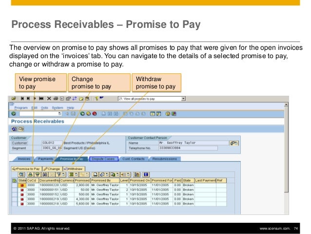 Proactive Collections and Dispute Management with SAP® Software SAP Collections and Dispute Management lets you define the collection strategy used • SAP Credit Management application for ... View Full Source